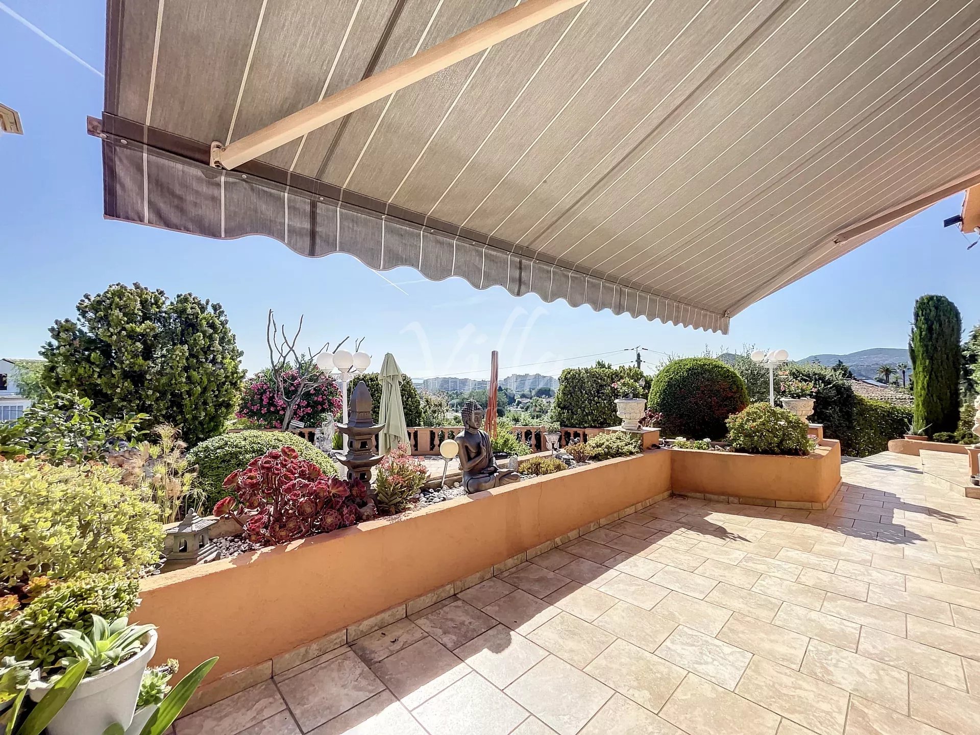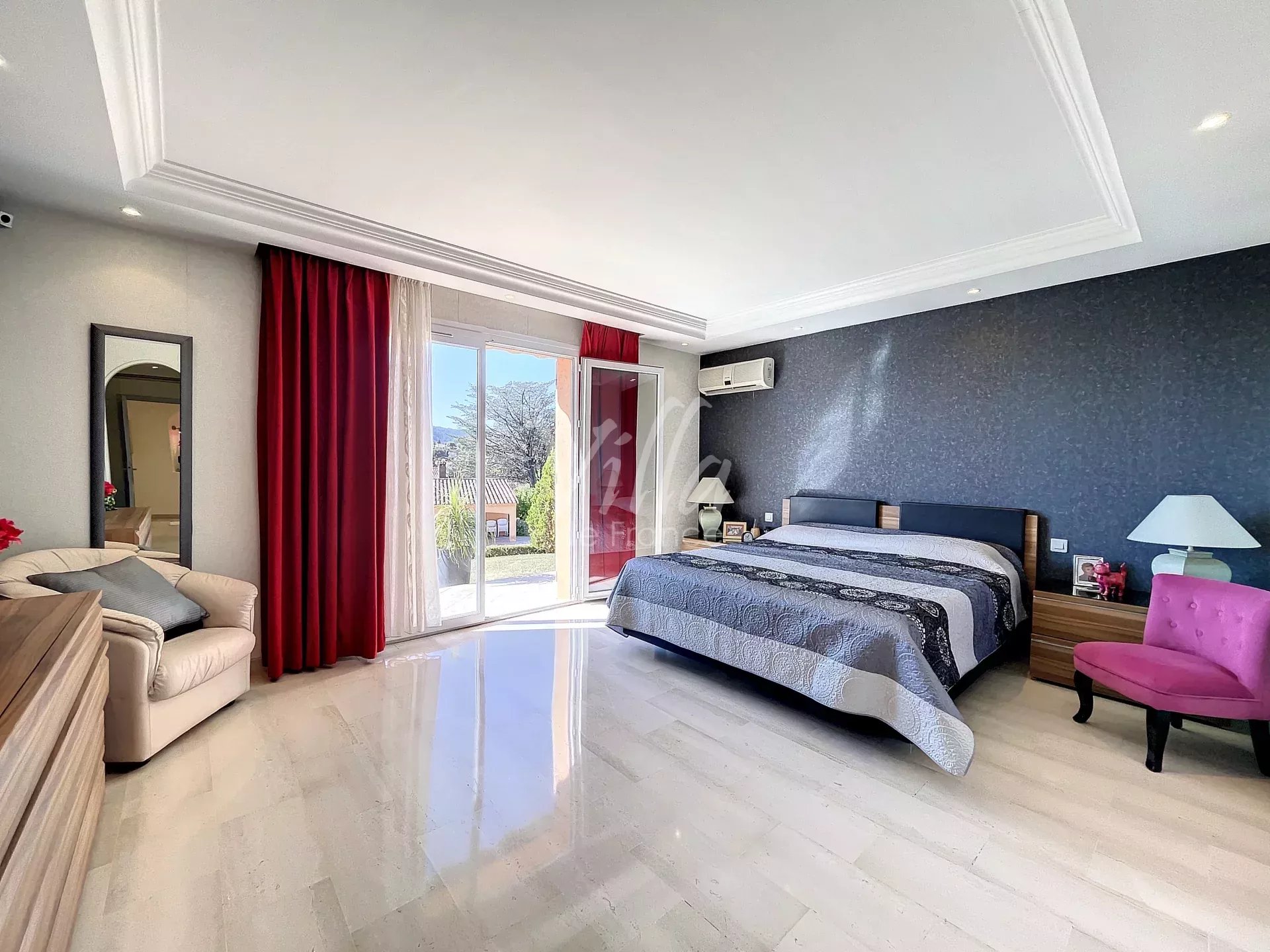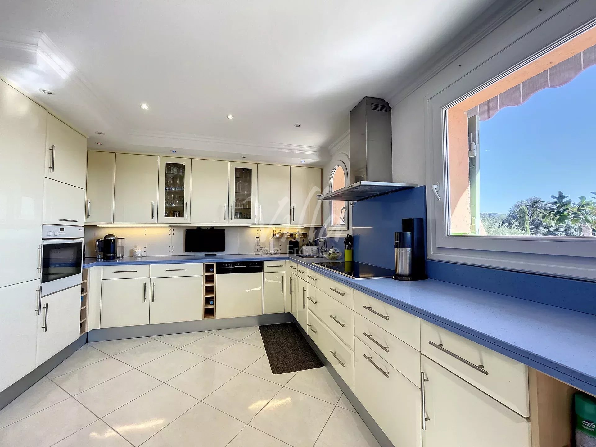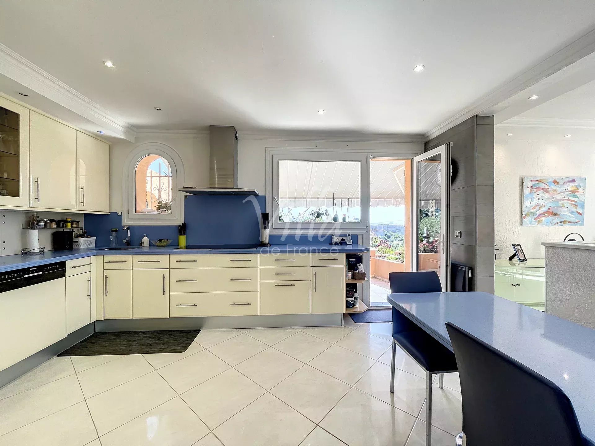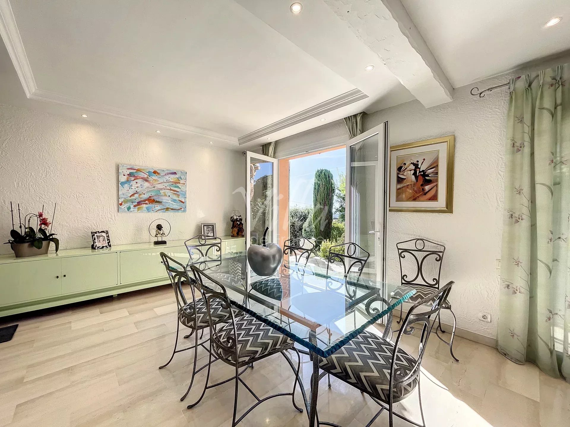 Situata in una tranquilla zona residenziale, vicino al prestigioso campo da golf Barbossi, scoprite questa incantevole villa di circa 200 m² di superficie abitabile, costruita su un ampio terreno pianeggiante e alberato di circa 2.350 m², con piscina e una magnifica vista mare. La villa, esposta a sud e completamente climatizzata, è così composta: