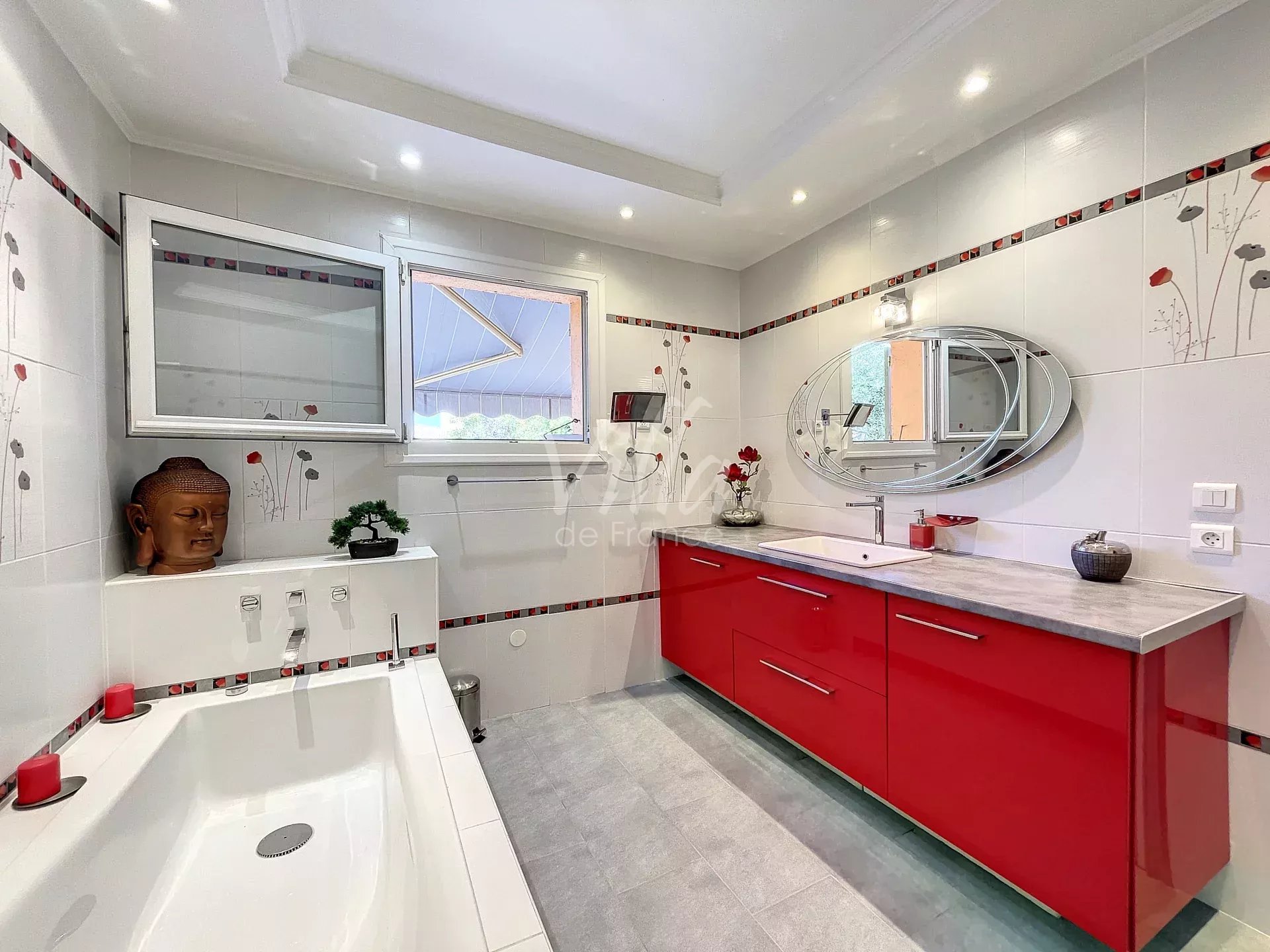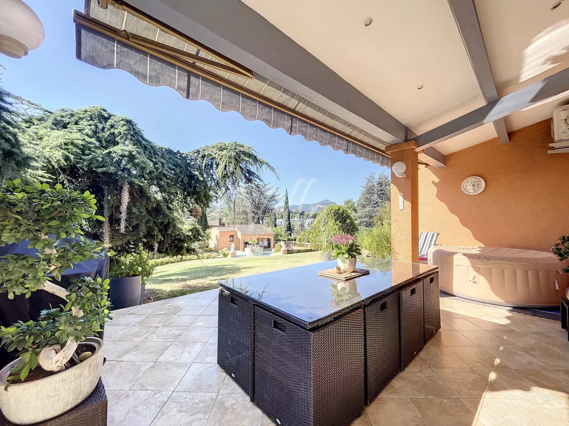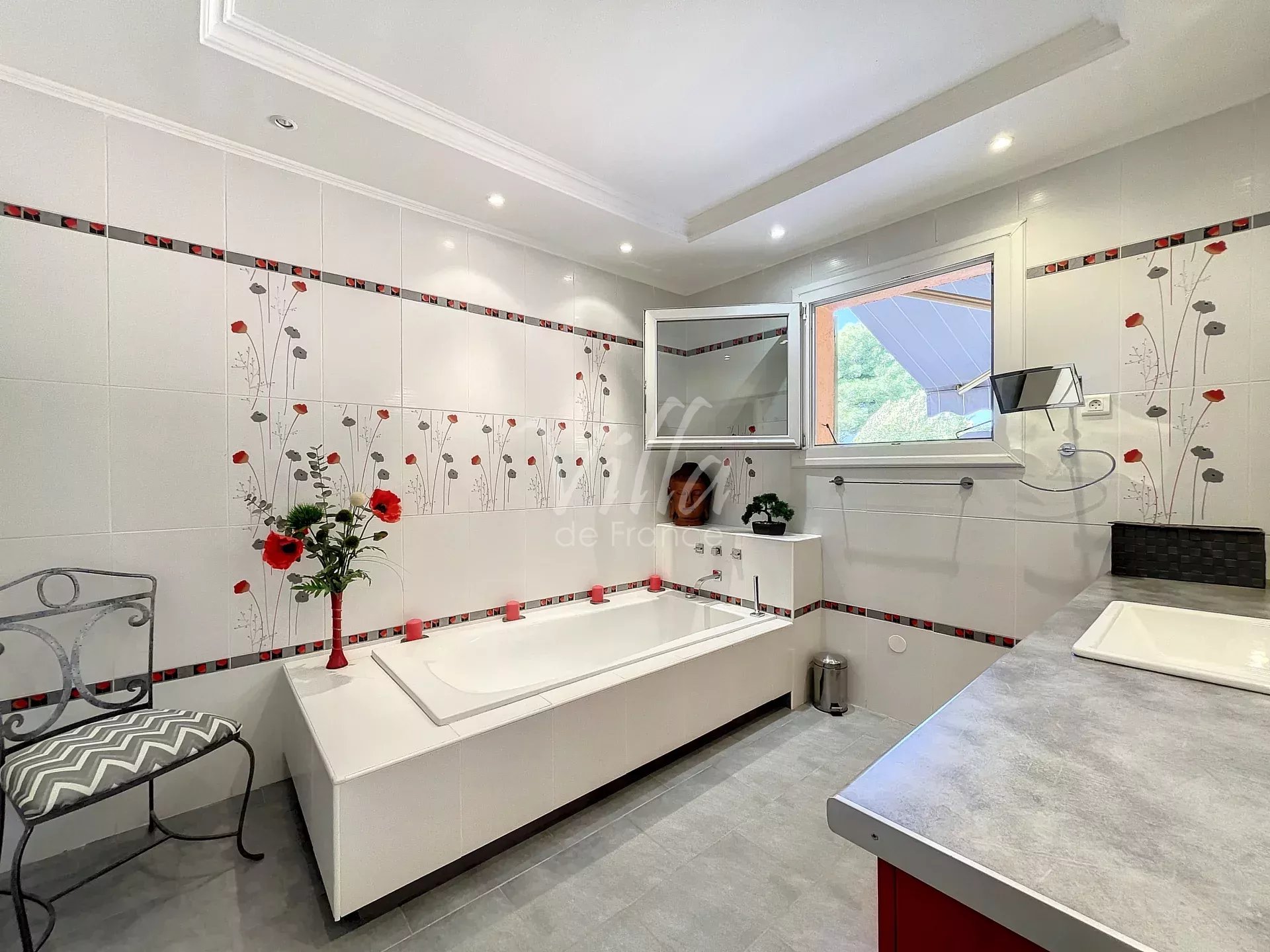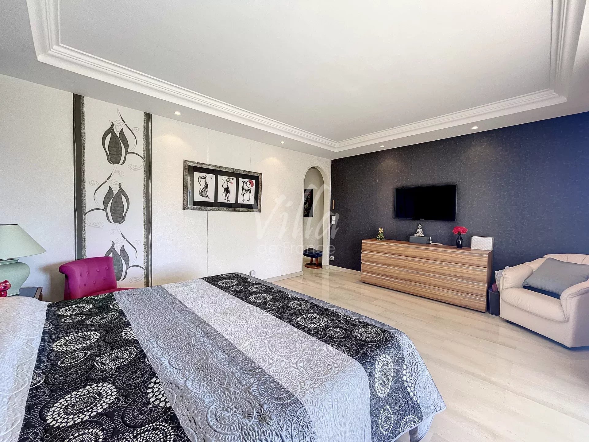 Situata in una tranquilla zona residenziale, vicino al prestigioso campo da golf Barbossi, scoprite questa incantevole villa di circa 200 m² di superficie abitabile, costruita su un ampio terreno pianeggiante e alberato di circa 2.350 m², con piscina e una magnifica vista mare. La villa, esposta a sud e completamente climatizzata, è così composta: